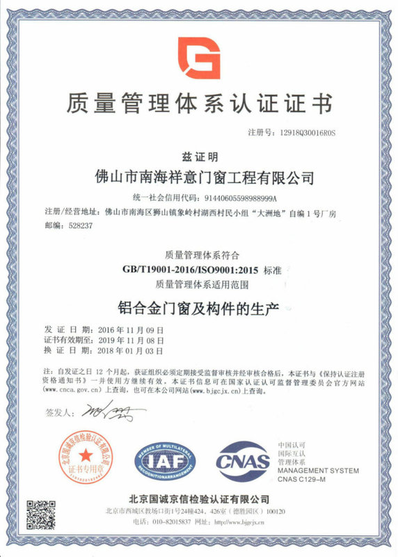 广东祥意门窗工程有限公司是一家专注铝合金门窗工程及门窗加工、制作的优质企业。公司凭着精湛的技术服务和优良的售后服务,已成功完成多个优质项目。